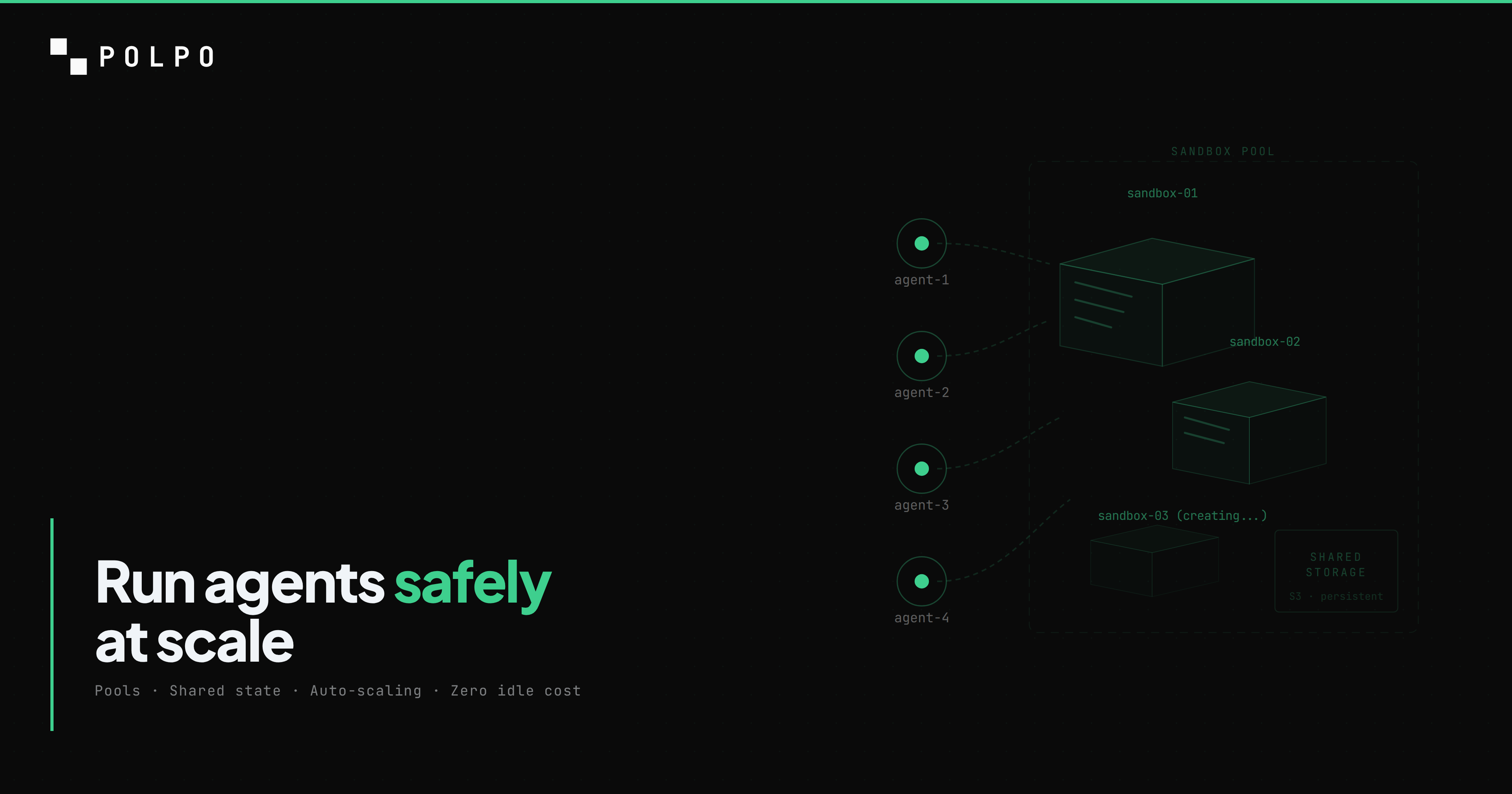 Today, Polpo Cloud runs agent tasks in Daytona ephemeral sandboxes. The runner receives a task, executes it inside a sandbox, and writes results to the database. The runner is model-agnostic -- it calls whatever LLM the task specifies via the AI Gateway.